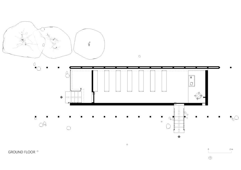 Here, architecture becomes silence. The steady rhythm of the columns plays with the light, carving shadows into fragments of peace. Between the brick walls and the void of the desert, boundaries dissolve: the gaze wanders, inviting the soul to travel far beyond the walls, toward that endless horizon where everything becomes possible.