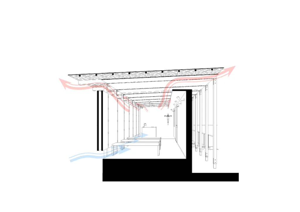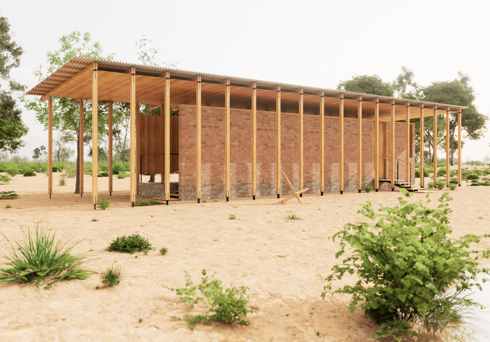 This chapel is not a monument, but a refuge. It is a hand extended to childhood, a shelter of brick and wood born from the dust and human ingenuity. Its earthen walls, anchored in ancestral soil, speak of the land's strength, while its airy roof seems to float, capturing the breeze to offer children the caress of a rediscovered coolness.