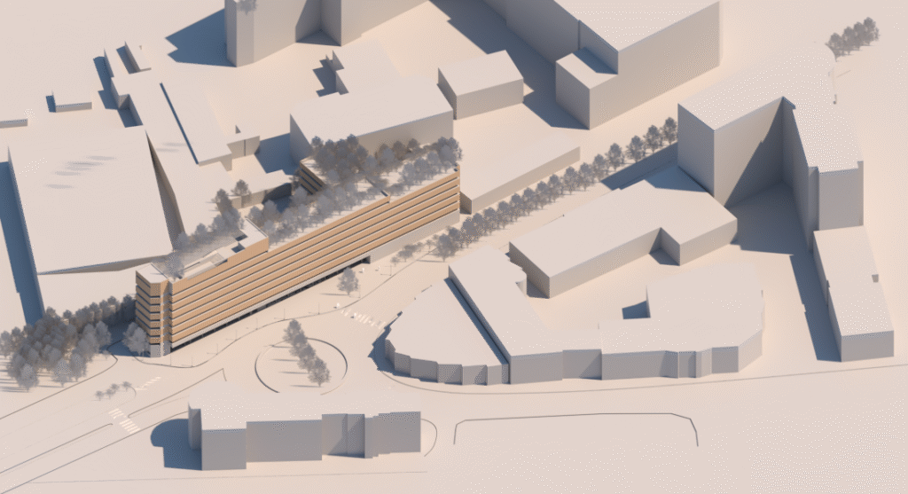 The project adopts a mixed structure: low-carbon reinforced concrete for the load-bearing elements and wood for the facades and interior furnishings. The free facades allow for ribbon windows to maximize natural light (atrium, skylights), thereby reducing energy consumption. The vegetation (gardens and rooftop) contributes to thermal regulation and urban biodiversity.